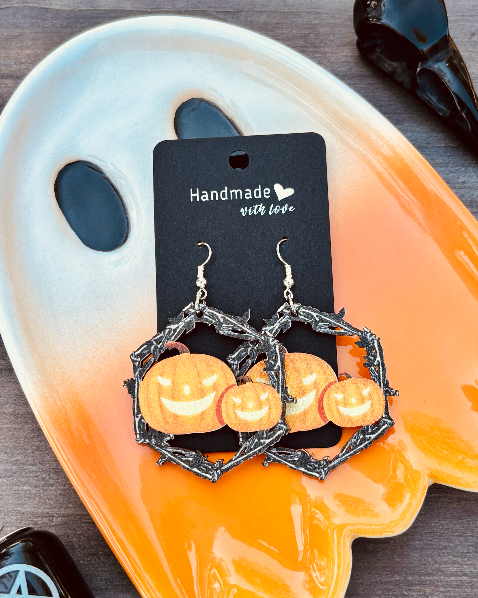 Wooden Jack-O-Lantern Earrings